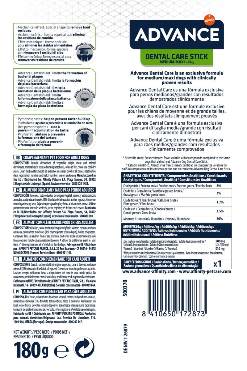 ALIMENTO COMPLEMENTARE PER CANI ADULTI DI TAGLIA PICCOLA (2-10KG)advance dental care ha una formula esclusiva per i cani di piccola taglia con risultati con risultati dimostrati clinicamente