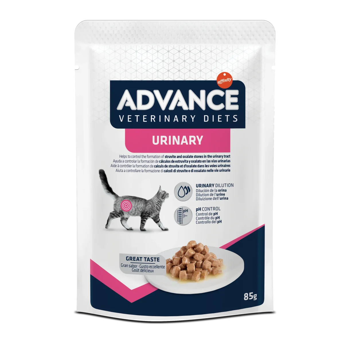 ADVANCE VET.DIET UMIDO GATTO URINARY BUSTA GR. 0,85 A BASSA SATURAZIONE RELATIVADELL’URINA (Aiuta a controllare la formazione dei calcoli di ossalato di calcio).
