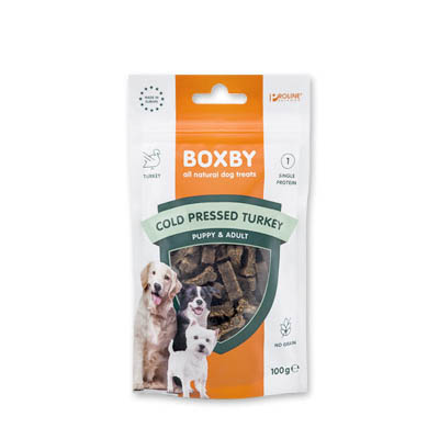 Boxby Snack Pressati a Freddo è uno snack con sole proteine, contiene carne di alta qualità, ipo-allergenico Formato 100 gr – diversi gusti disponibili