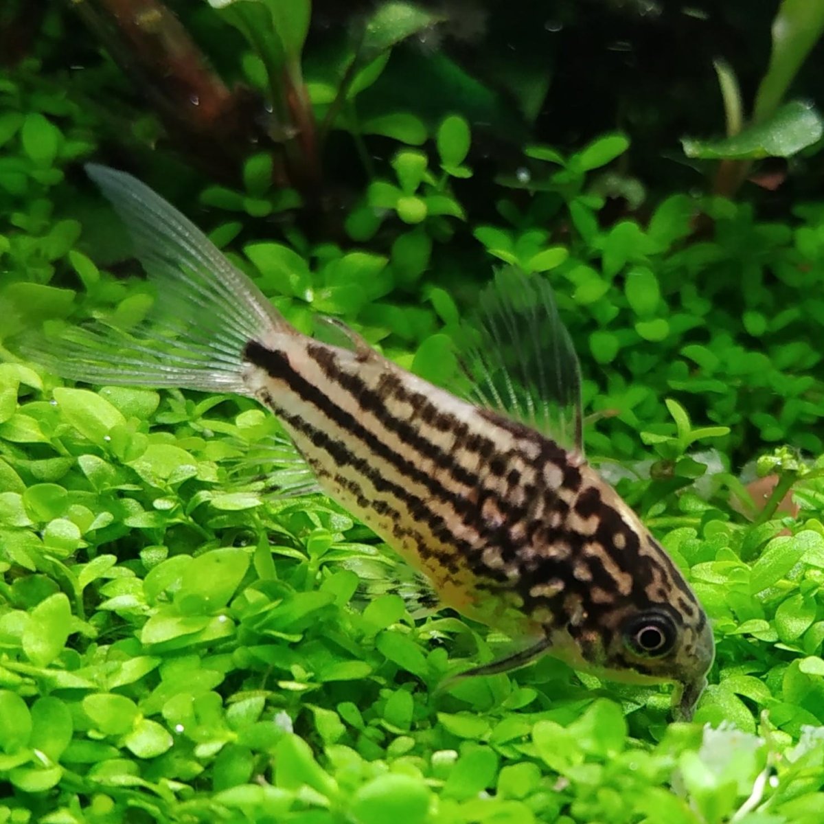 Un piccolo Corydoras divertente e interessante, ama girare in branco, posandosi spesso sulle piante.