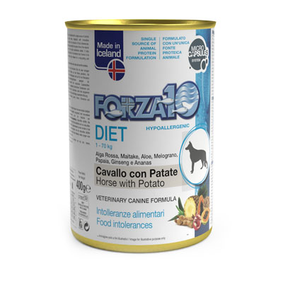 | Forza 10 Gusti | Agnello con Riso, Cavallo con Patate, Cavallo con Riso, Cervo con patate, Cervo con Riso, Tonno, Tonno con Riso |