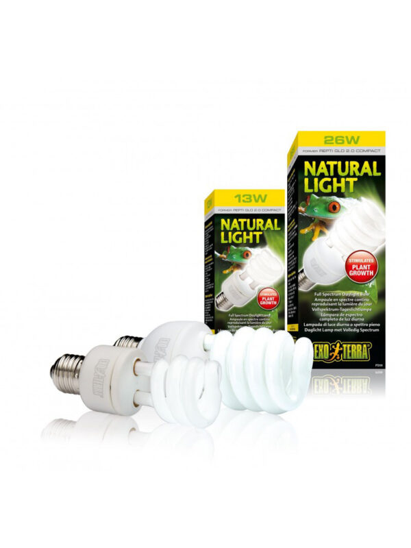 Combinate l’alto livello di luce visibile generato dalla Natural Light con Exo Terra Reptile UVB100, UVB150 o UVB200 per ottenere condizioni di luce solare ottimali, simili a quelle massime.
