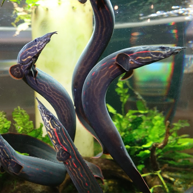 Mastacembelus Erythrotaenia ***SPECIALE TAGLIA XL, 20/25cm*** PREDATORE di grosso calibro, si dimostra generalmente pacifico, purché i compagni di vasca siano abbastanza grandi per evitare di essere lo spuntino di questa timida e meravigliosa anguilla d’acqua dolce (che non disdegna comunque se allevata in acqua leggermente salmastra)