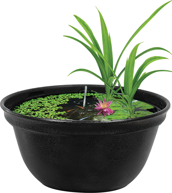 MINIPOND da interno-esterno Capacità 16 L Ø 42cm Altezza 20cm Scarico per prevenire il troppo pieno Il Mini POND è dotato di pratici fori di scarico per prevenire il traboccamento dell’acqua piovana Apertura per tubo dell’aria Il Mini POND è dotato di una apertura da 6 mm per il collegamento di un tubo dell’aria.