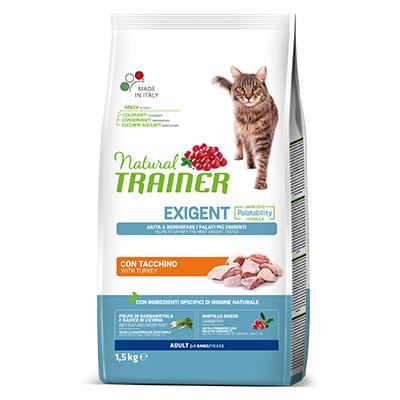 Natural Trainer Cat Exigent è un alimento completo ed equilibrato per gatti adulti, da 1 anno d’età, dai gusti particolarmente esigenti. Diversi formati e gusti disponibili