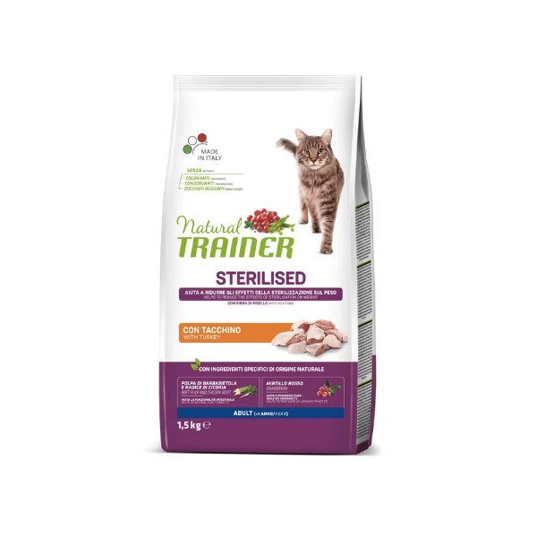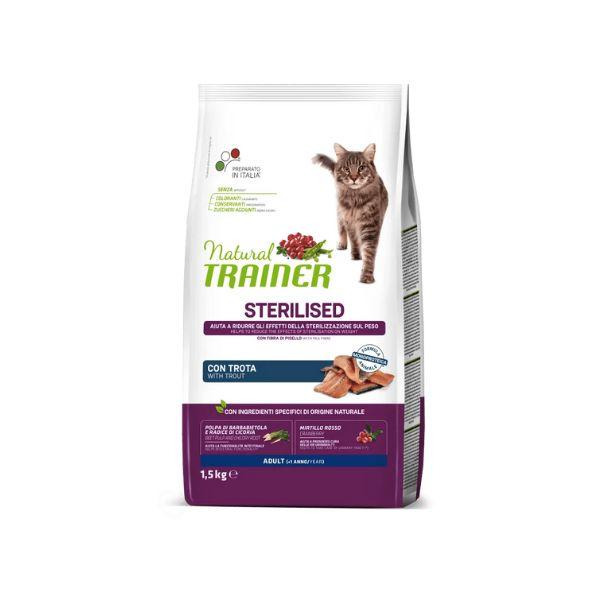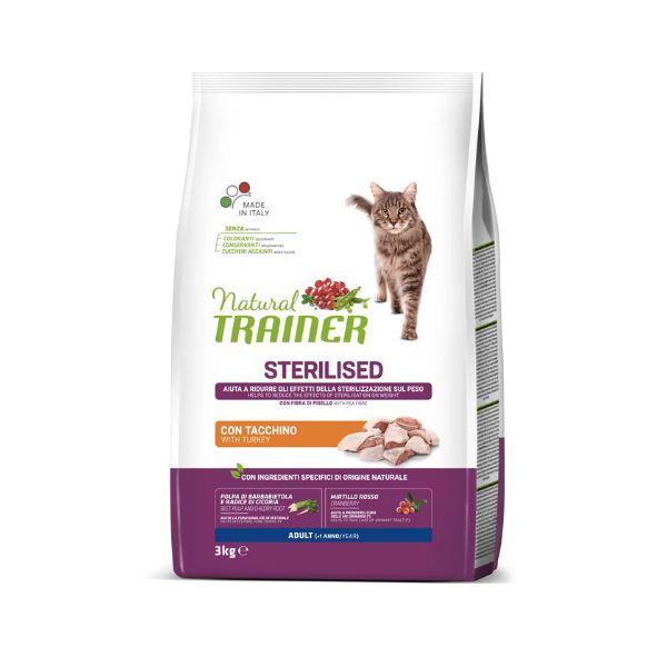 Natural Trainer Cat Sterilised è una gamma di alimenti secchi completi per gatti adulti sterilizzati, un alimento altamente appetibile e dall’ottimale profilo proteico, ideale per un vero carnivoro. È un prodotto 100% naturale adatto ai gatti adulti. Diversi formati e gusti disponibili