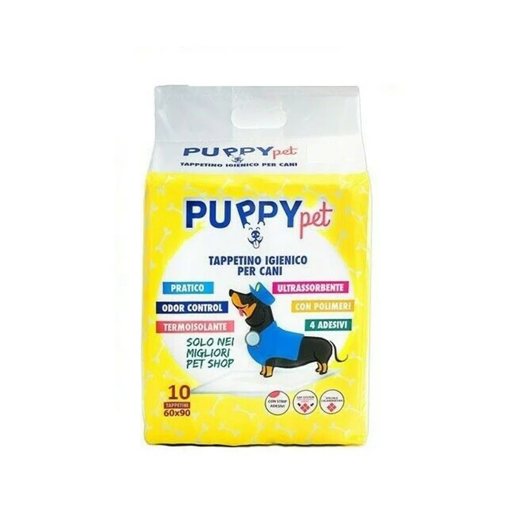 ll tappetino igienico PUPPY PET è un traversino multistrato ideale per i tuoi piccoli amici che vivono in appartamento. Il lato superiore è in grado di assorbire una gran quantità di liquidi, mentre lo strato sottostante, a contatto col pavimento, è perfettamente impermeabile. Altra caratteristica importante dei nostri tappetini è quella di trattenere al loro interno i cattivi odori grazie al sistema odor control.
