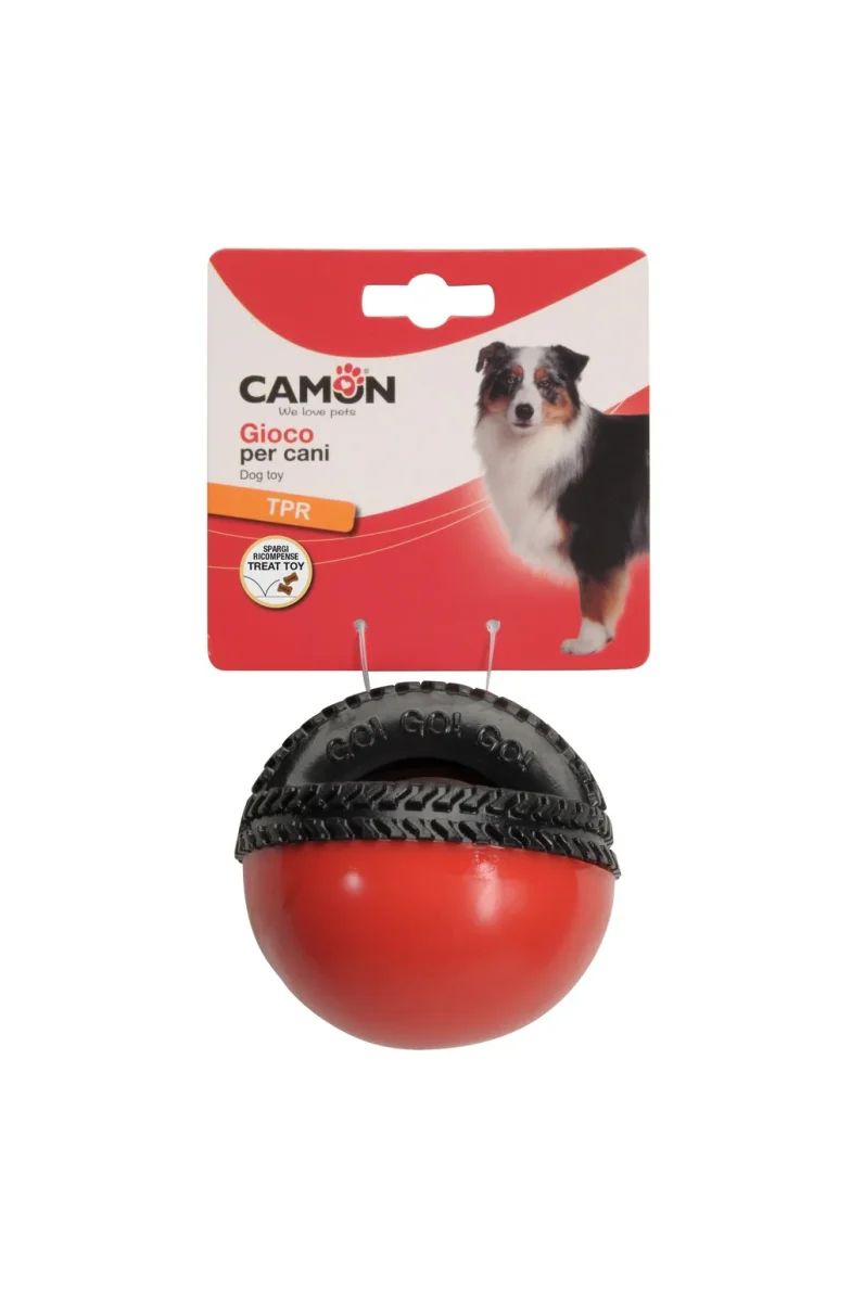 Divertente e resistente gioco spargiricompensa in TPR per cani, nella forma di una semisfera con maniglia.Disponibile in 2 diversi colori.