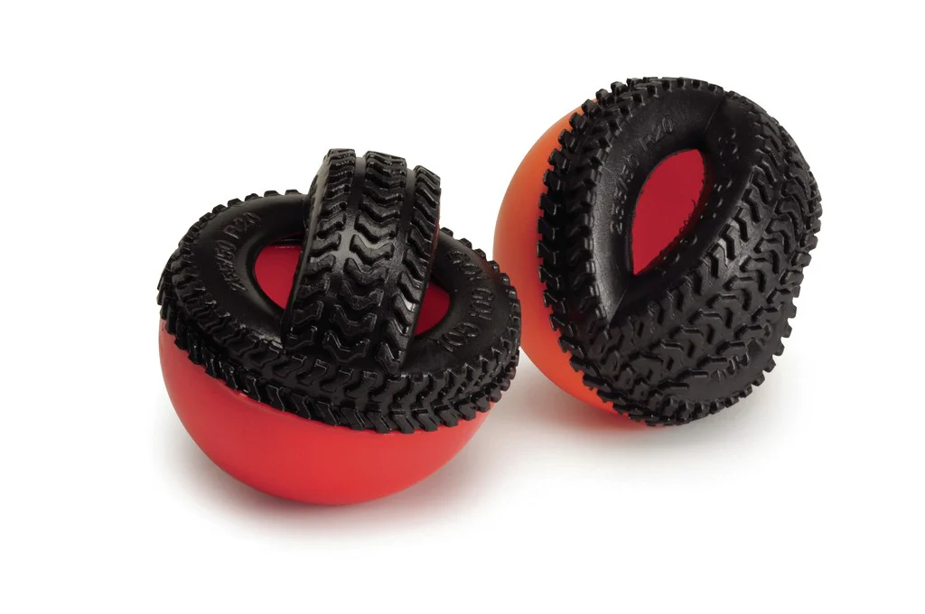 Divertente e resistente gioco spargiricompensa in TPR per cani, nella forma di una semisfera con maniglia.