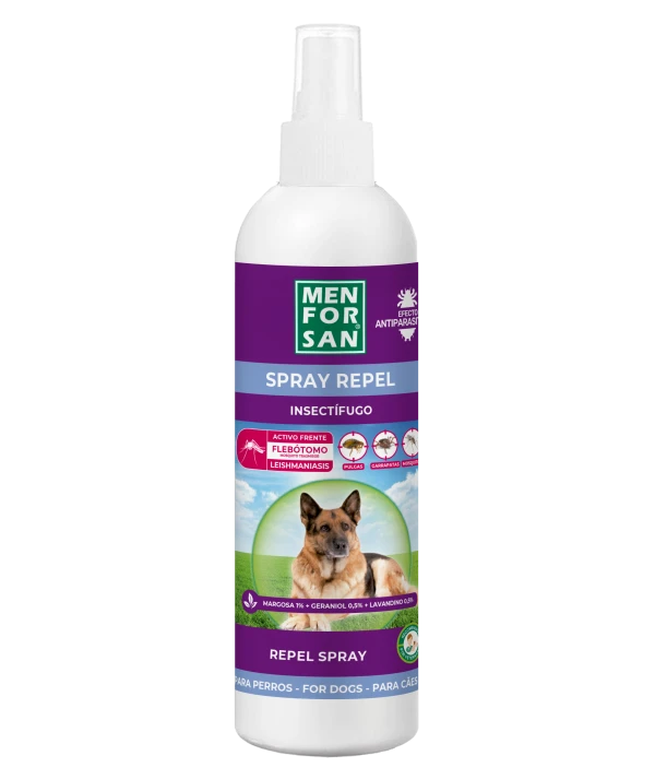 Proteggi il tuo cane in modo naturale e sicuro con lo Spray Antiparassitario Menforsan, formulato con principi attivi vegetali che respingono tutti i tipi di insetti, sia striscianti che volanti, incluse le zanzare.