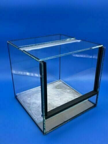 Terrario in vetro 10x10x10 con ventilazione in alto, apertura anteriore a ghigliottina. Adatto ad Aracnidi, Insetti.