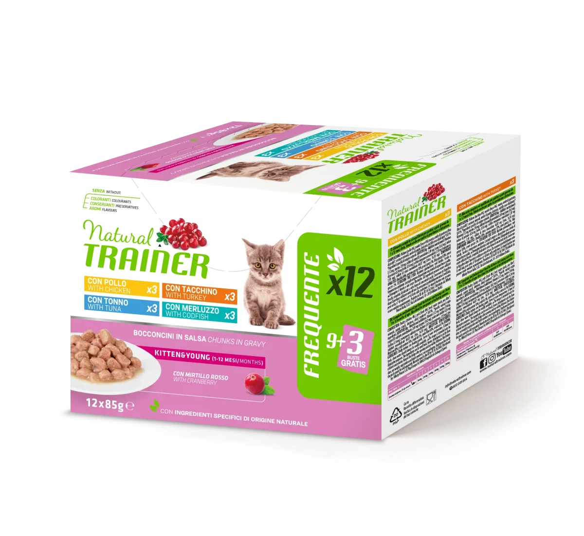 Trainer Natural Cat Multipack Kitten 4 Gusti Merluzzo,Tonno, Tacchino Pollo (Kg/Size: 0,085)