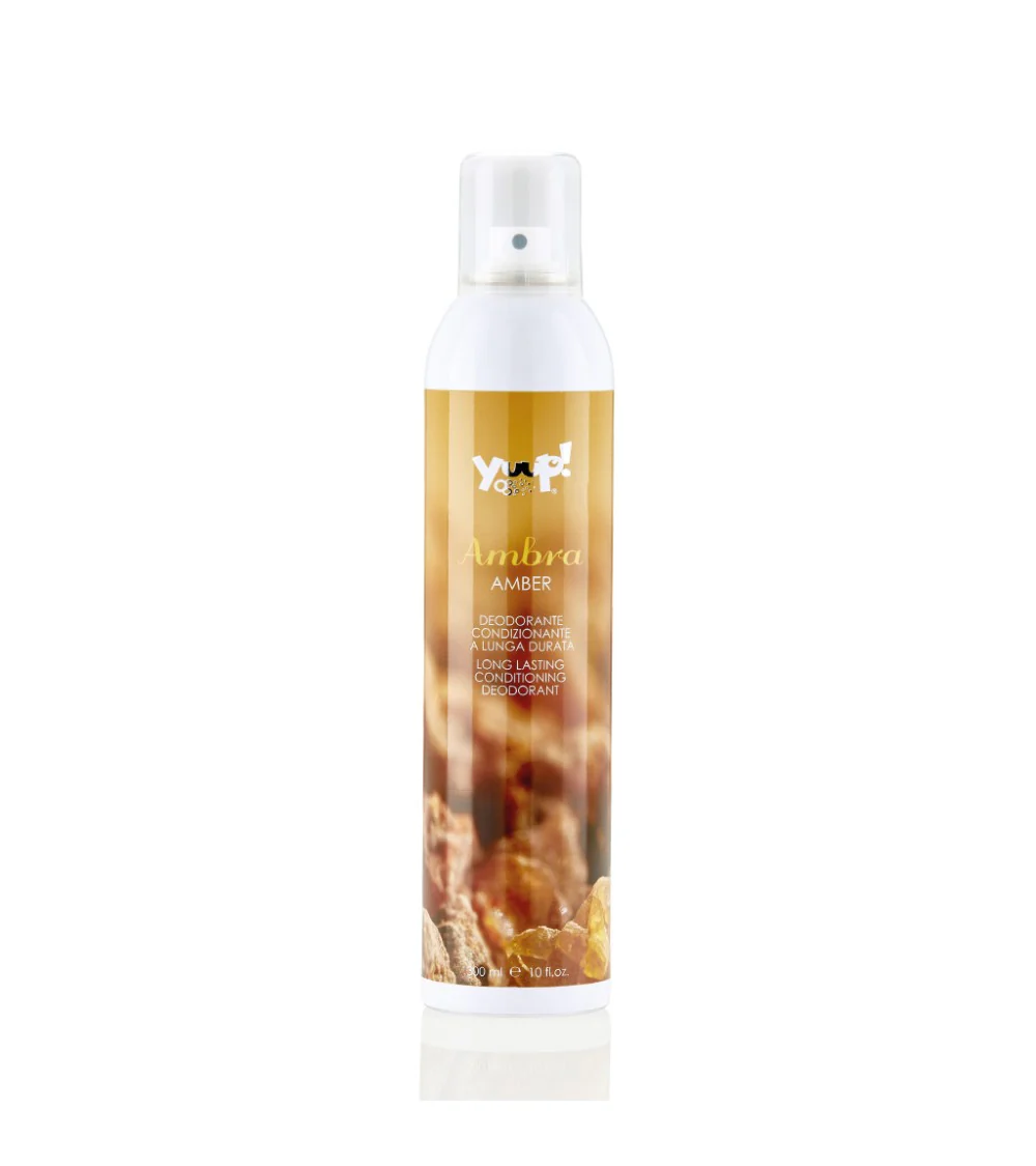 Ambra: Preziosa ed elegante fragranza con note di talco e vaniglia per contrastare la formazione dei cattivi odori e per condizionare il pelo del cane e del gatto. Lโ€™estratto di Lichene Islandico svolge unโ€™azione antimicrobica naturale unito alla Salvia, dermopurificante e deodorante della cute, e al Pompelmo dalle proprietร  antisettiche e antibatteriche. La preziosa fragranza, elegante e sofisticata persiste sul pelo per molti giorni, lasciandolo a lungo profumato e pulito.